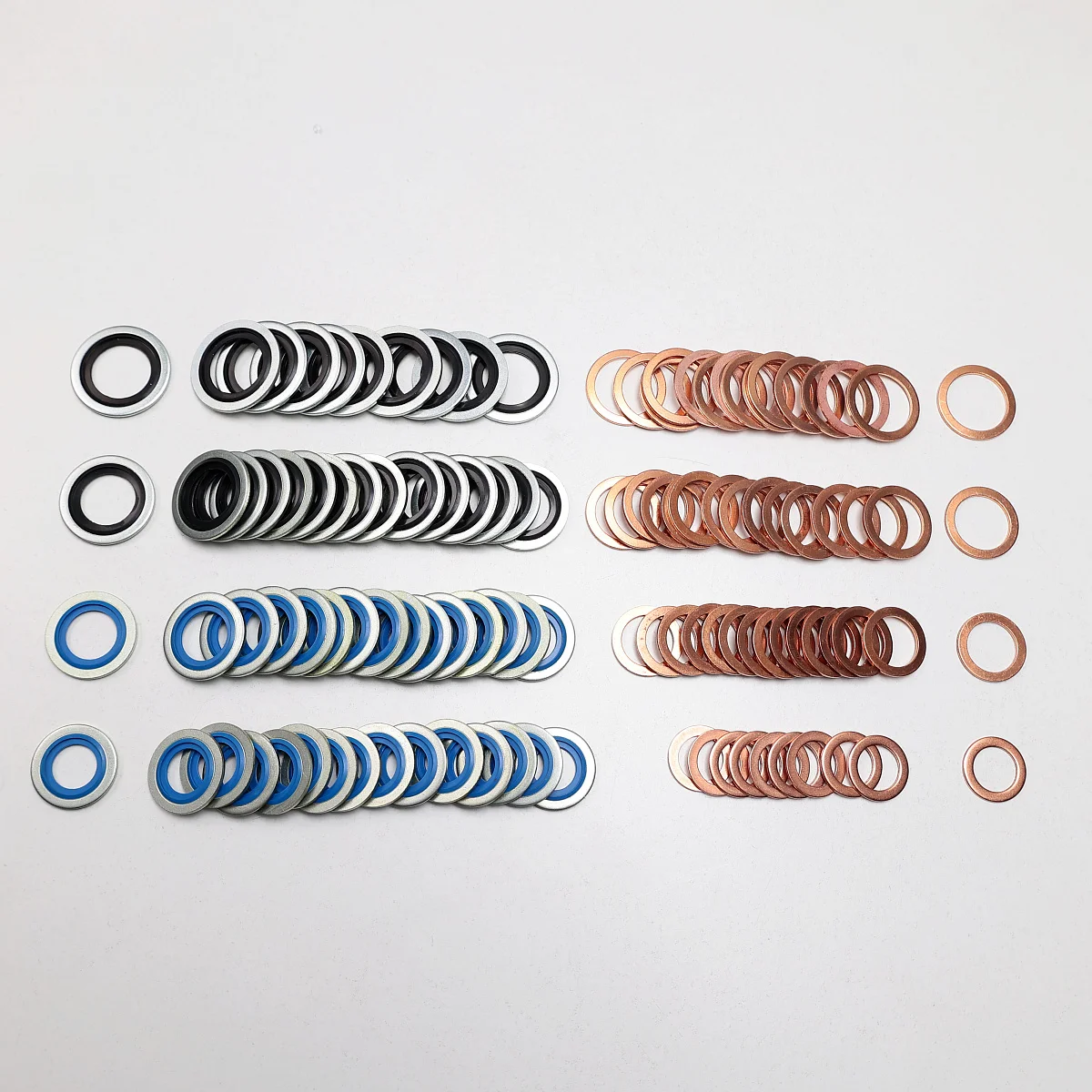 Набор уплотнительных шайб различных диаметров для использования при герметизации пустотелых болтов, штуцеров рулевых реек