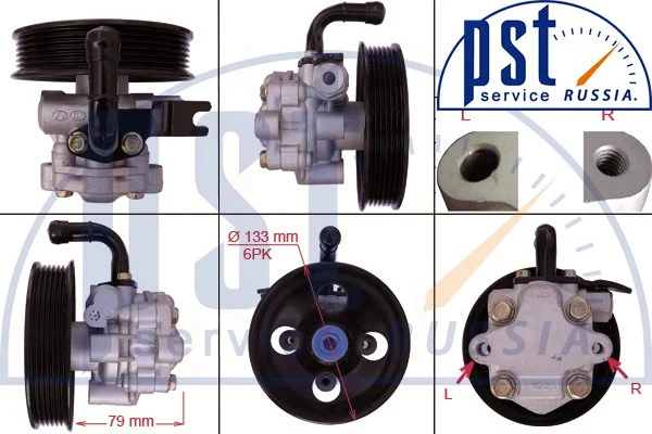Насос ГУР 2точки крепления без резьбы, 2точки крепленияна резьбе, прессованный шкив, штуцер высого давления в сторону противоположную вращению, 6 ручейков. Kayaba Новинки