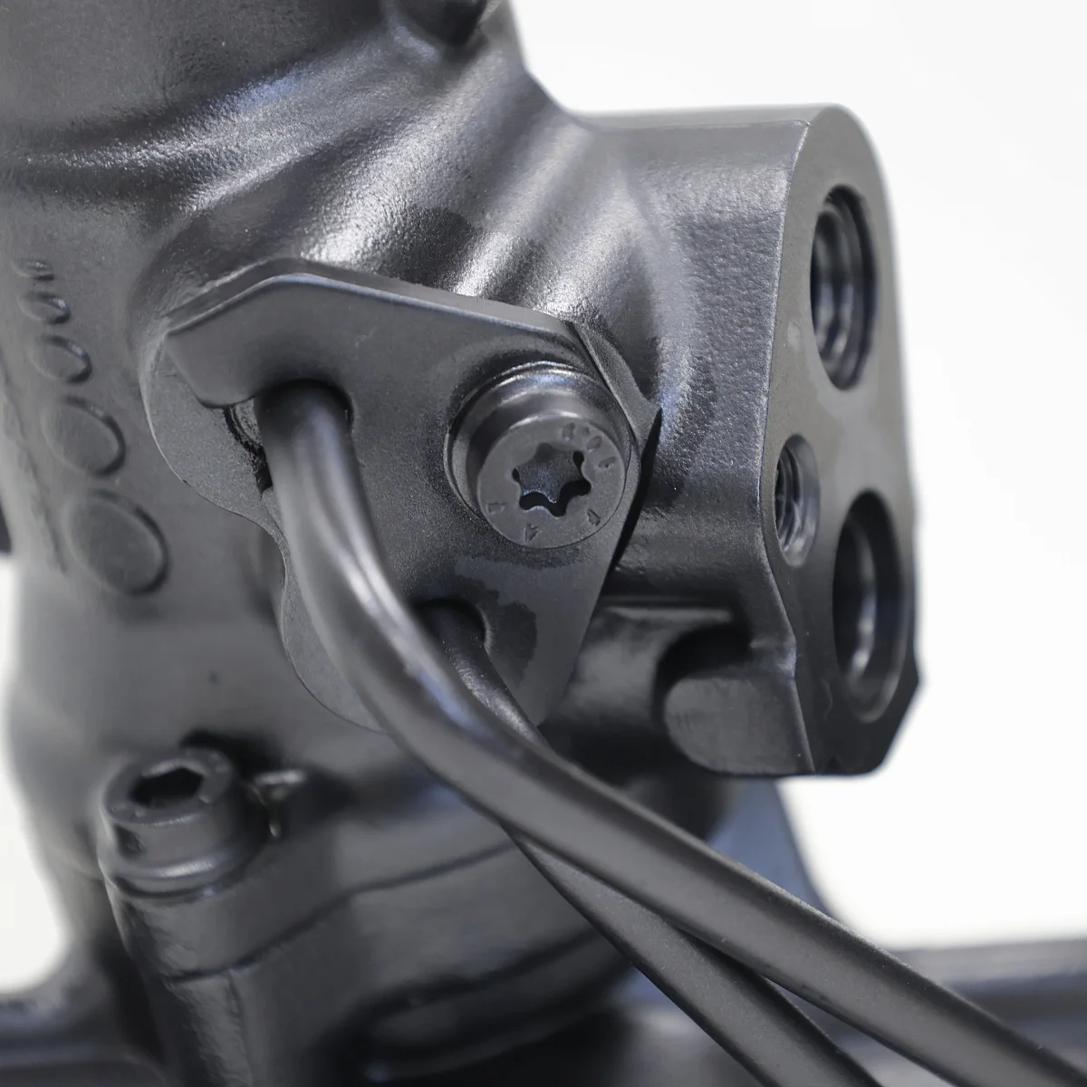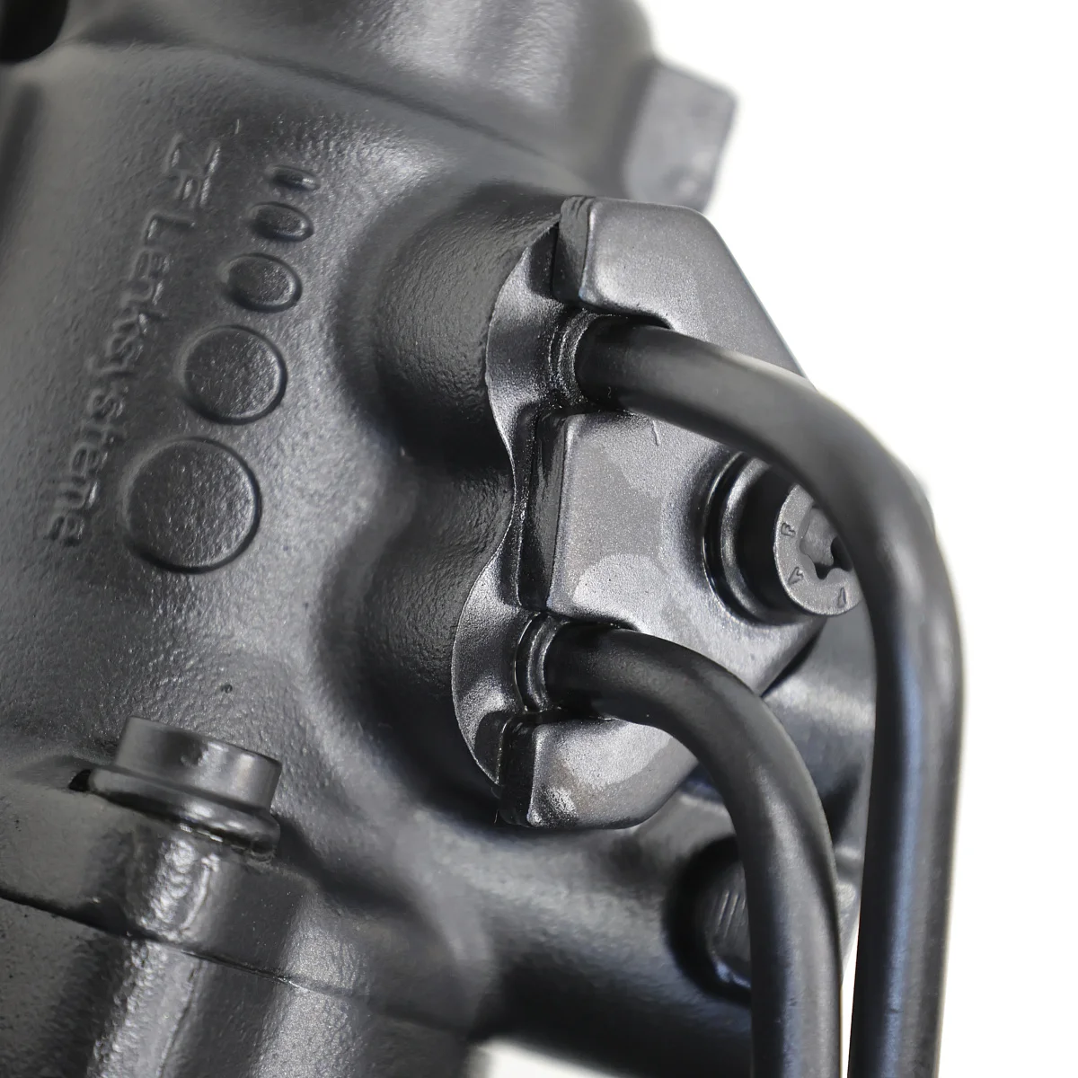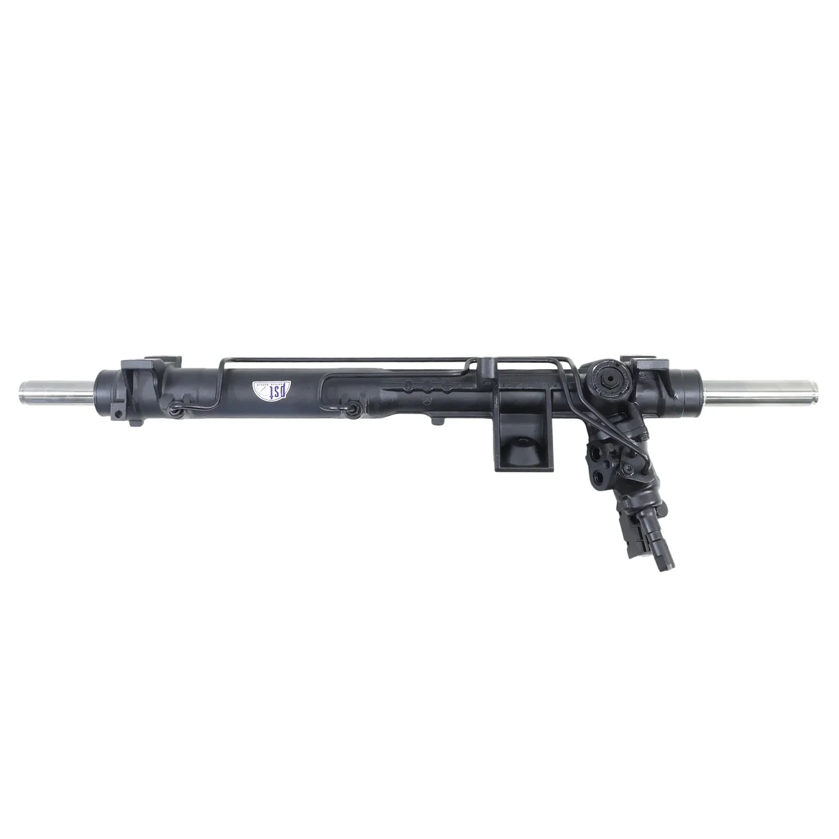 Оригинальная восстановленная рулевая рейка производителя ZF с площадкой для крепления опоры двигателя, шланги высокого давления фиксируются прижимной пластиной.