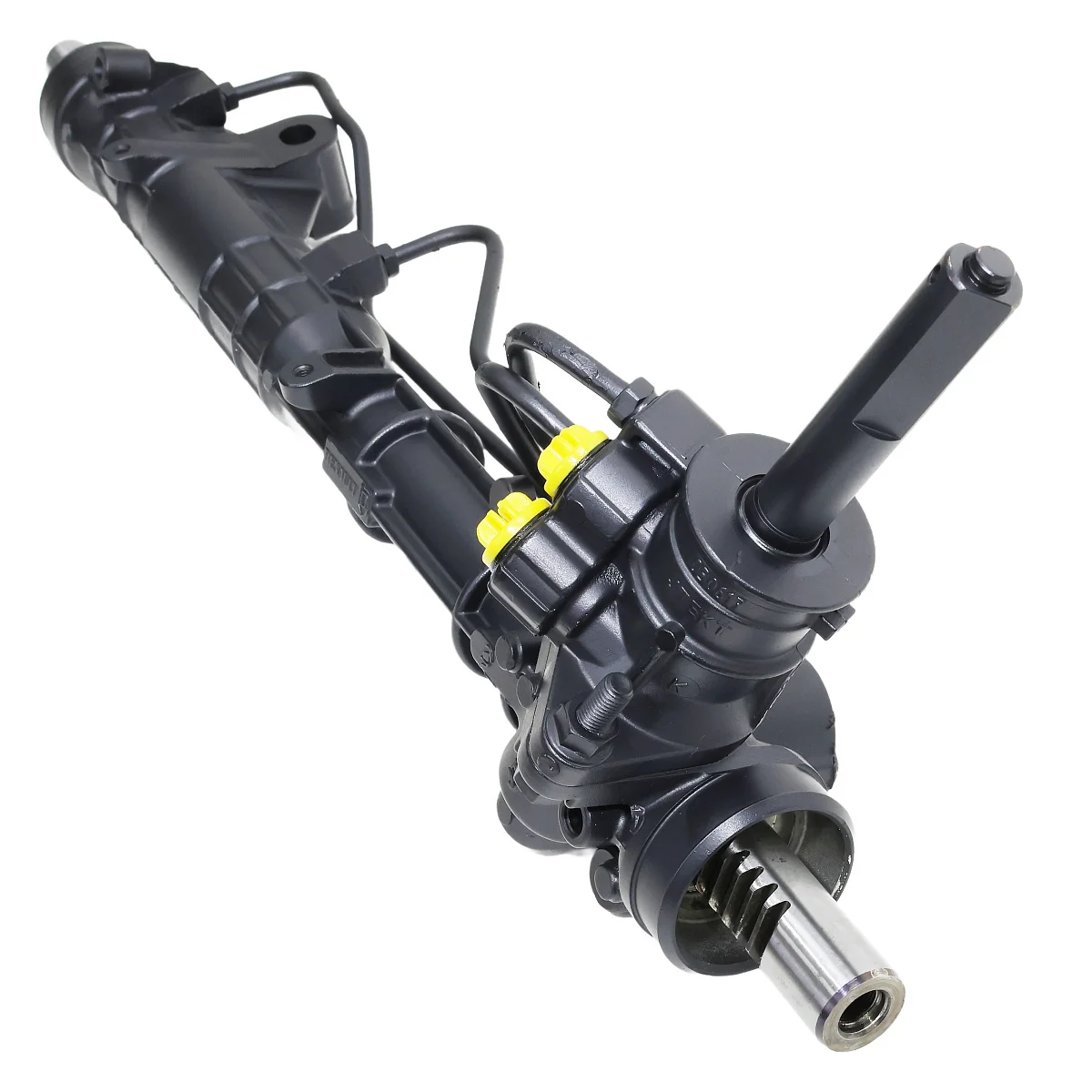 Оригинальная восстановленная гидравлическая рулевая рейка с квадратным штоком, 2-мя точками крепления, штуцерами вход/выход на резьбе и разборным корпусом золотника.