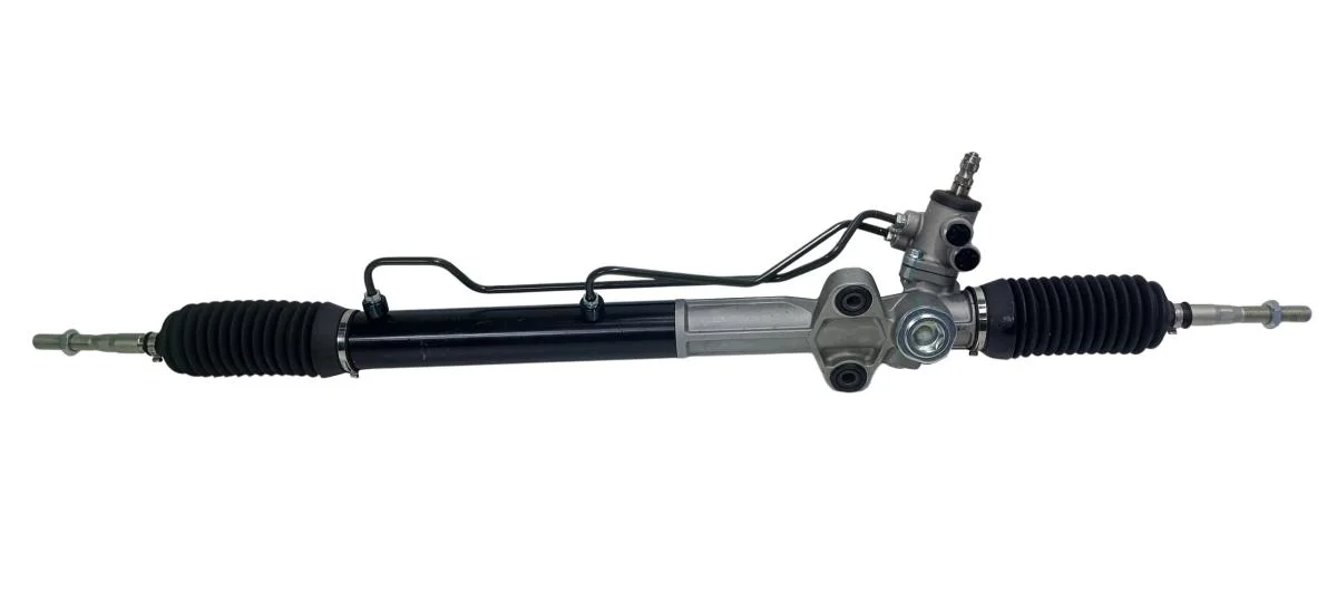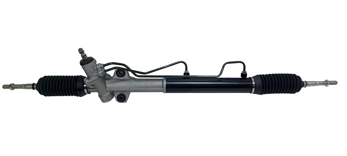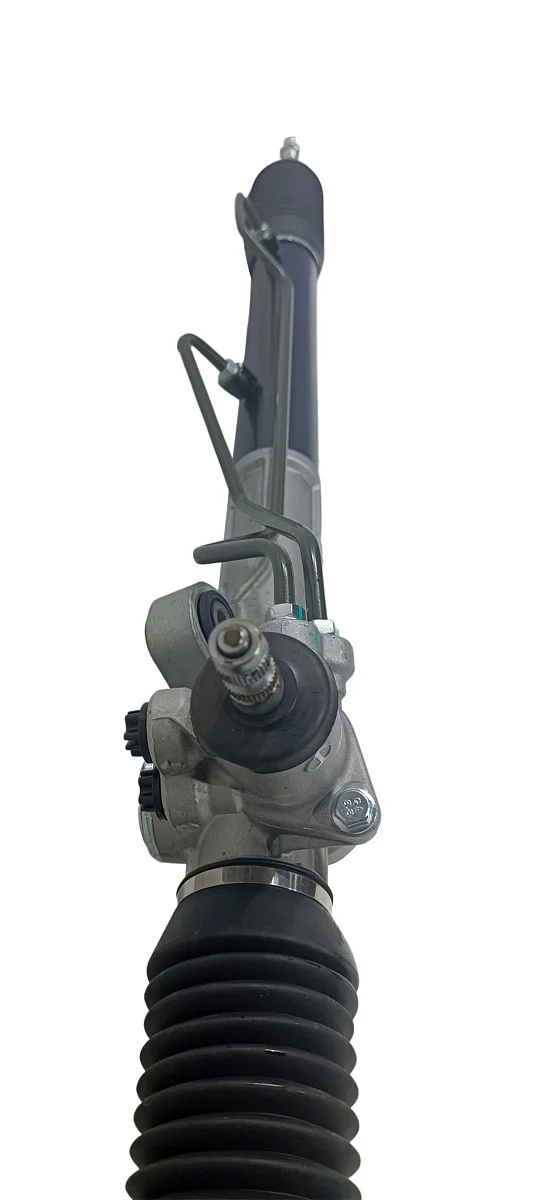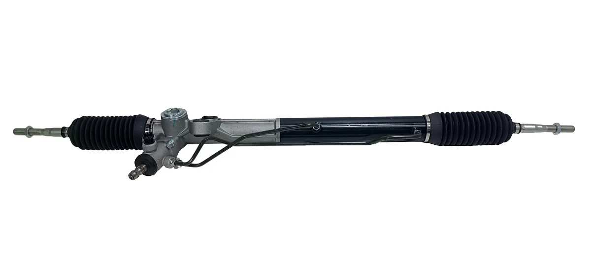 Новая гидравлическая рулевая рейка со шлицевым штоком, разборным корпусом золотника, 2-мя точками крепления и вертикально расположенными штуцерами трубок гидроцилиндра. Длина рулевой рейки в сборе с тягами 1180мм. Производитель PST