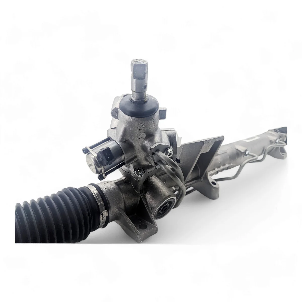 Новая рулевая рейка PST под датчик сервотроника с площадкой для крепления опоры двигателя, шланги высокого давления фиксируются прижимной пластиной, для автомобилей с 2005 года выпуска.